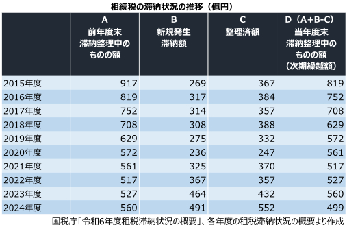 上記調査結果などから、直近10年間の相続税の滞納状況をまとめると、下表のとおりです。
